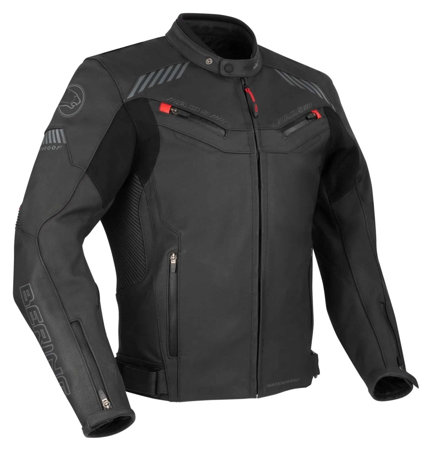 Technical jacket made with high quality cowhide and ShieldTex stretch fabric inserts. It has an ADS ventilation system with heat-sealed zips, a laminated waterproof BWTech Mega membrane and a high-performance Shelltech Mega removable thermal lining that allows it to adapt to different weather conditions. It incorporates CE certified protections on shoulders and elbows as well as a pocket for an optional back protector (sold separately).